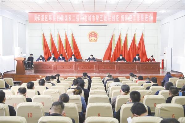 本报讯 (记者 宋风 文/图) 3月13日,周口港区召开创建国家空气质量二级标准城市暨“五城联创”、疫情防控推进会(如图)。区党委书记孙红伟主持会议,并针对重点工作进行动员。