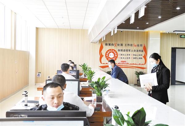 3月20日,市民在商水县退役军人事务局便民服务大厅咨询优抚政策。该局组建一年多来,围绕保障退役军人权益,政策向实处落、工作往细处做,全面提升退役军人服务管理水平,切实打通服务保障“最后一公里”,受到社会好评。 记者 付永奇 摄