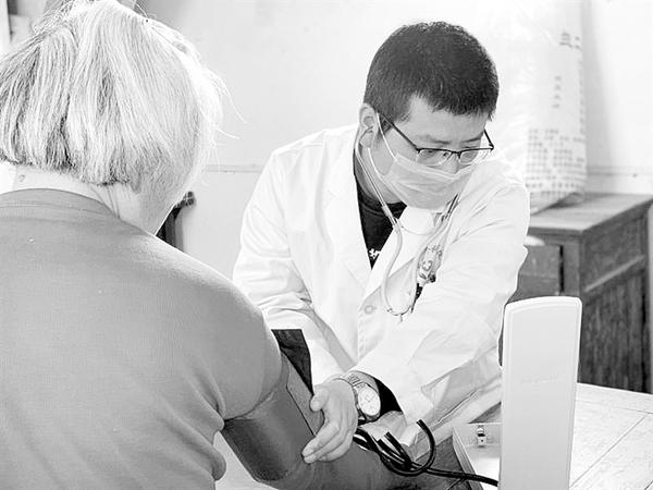3月19日下午,周口淮海医院康复科医生许鹏一行三人,携带简单的医疗设备,来到川汇区城北办事处张夏庄,为贫困群众进行健康体检。体检过程中,许鹏详细了解贫困群众的身体健康状况,为他们提供用药指导和健康指导,并向他们宣传健康扶贫政策。贫困群众对这种贴心的上门服务称赞不已。据悉,周口淮海医院将对贫困群众每周进行一次巡诊,以提高贫困群众对该院健康扶贫工作的认可度、增强贫困群众的获得感和幸福感。图为许鹏为贫困群众测量血压。