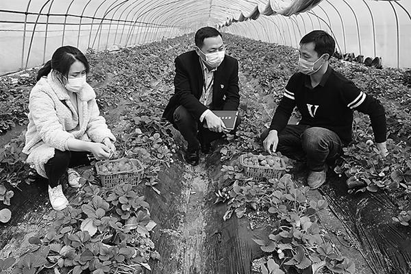 3月25日上午,商水县平店乡纪委干部在葛楼村的返乡农民工万新华的草莓采摘园了解情况。该乡纪委采取“监督+作风+审查+问责”等办法力促主体责任、帮扶责任落实。在乡纪委监督下,今年全乡为25个行政村、774户贫困户(3064人)、1990.46亩特色种植业申报了40.18万元的奖补项目。