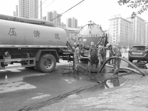 3月30日上午,记者在周口中心城区建设路看到,市城市管理局出动高压清洗车、吸污车对路边窨井内的垃圾、淤泥进行清理,确保窨井排污畅通,为积极应对汛期到来,扎实做好汛前各项准备工作。记者 张洪涛 摄