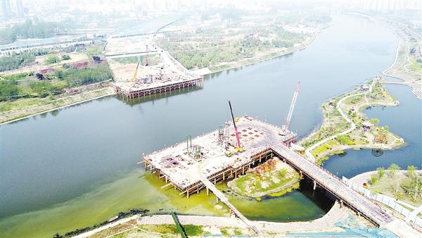 在做好疫情防控的前提下,我市有力有序推动各类重点企业、重点项目复工复产,确保完成今年经济社会发展的各项目标任务。图为周口七一路东延工程跨沙颍河大桥项目正在紧张施工中。