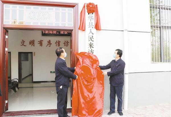 随后,林鸿嘉、岳新坦共同为县人民来访接待中心揭牌(如图)。