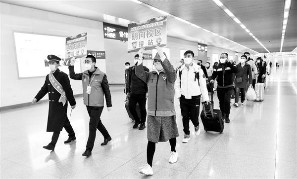 4月10日,在太原南站,太原理工大学返校的学生准备出站。当日,山西省首批高校本硕博毕业年级开学复课。新华社发