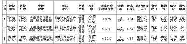 2020年4月29日16时(地块编号:TK2019-50),2020年4月29日16时(地块编号:TK2019-51),2020年4月29日16时(地块编号:TK2019-52)。