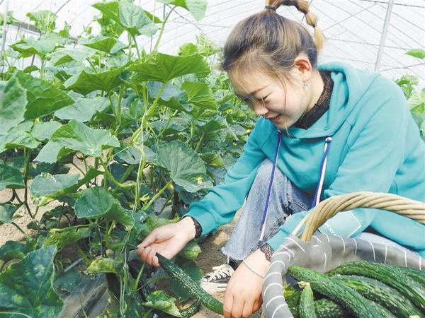 4月12日,沈丘县周营镇苏楼村的群众正在大棚里采摘订单黄瓜。近年来,该村因地制宜,引导群众走以产兴农、以产富民的路子,通过组建合作社的方式,建立了200亩大棚蔬菜基地,种植生态黄瓜、蕃茄、辣椒、西瓜等,带动群众持续增收致富。记者 孙安平 摄