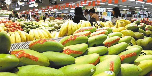 4月25日,市民在商水县一超市选购水果。随着全市疫情防控形势向好、企业全面复工复产,城区人流量增大,超市果蔬销量较以前有所增加,因为当前正值换季,一些水果价格略微上涨,但涨幅不太大,供应充足。记者 付永奇 摄