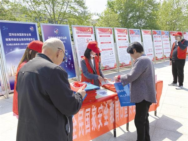 4月15日,川汇区“4·15”全民国家安全教育日宣传活动在区文化广场隆重举行。37家区直单位通过布设展板、发放宣传资料、现场接受咨询等形式,向市民宣传国家安全相关法律法规。记者 韩志刚 通讯员 理效明 摄