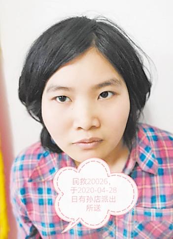 姓名:20026,编号:2020042802,女,26岁左右,2020年4月28日在河南省孙店镇高皇庙村被发现。受助者疑似精神障碍,身高158CM,体重51KG,上身穿红色衣服,下身穿黑色裤子,长头发。有认识此人者,请与项城市救助站联系。