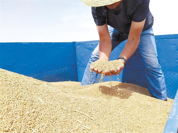 本报讯(记者刘彦章 王艳 见习记者 乔小纳 文/图) 6月4日,商水县高标准粮田示范区内,金灿灿的麦穗迎风摆动,麦香四溢。种粮大户邱守先站在自家承包的麦田边,揉搓着收割机刚刚吐出的麦粒:“你瞅瞅,这小麦籽粒饱满,品相多好!”然而,面对丰收景象,他却说“后悔了”。