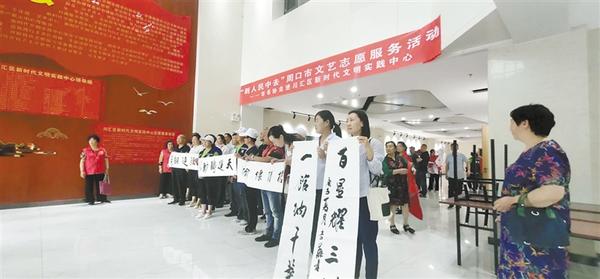 5月28日,市书协的书法家走进川汇区新时代文明实践中心开展“到人民中去”文艺志愿服务活动,为“川汇百星”代表、志愿者代表及社区群众义写作品,展示书法艺术,弘扬志愿精神,讴歌伟大新时代。记者 韩志刚 通讯员 理效明 摄