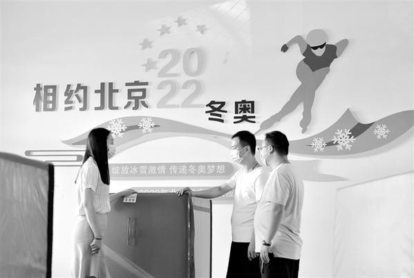 6月14日,在河北省定州市一家体育防护垫生产企业,员工(左)向顾客介绍产品。河北省定州市是体育用品产业名市,拥有健身体育文化用品企业400余家。连日来,在做好疫情防控的前提下,企业全面复工复产赶制订单,确保员工稳岗增收。 新华社发