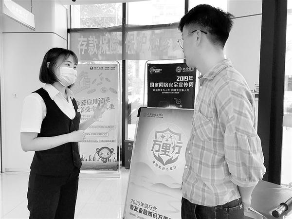 为提升社会公众的金融知识水平,增强群众的防骗意识,近日,郑州银行周口分行开展普及金融知识万里行活动。该行围绕“支付安全”“防范电信网络诈骗”“金融知识普及”等主题,在营业厅内布置展板,为群众讲解如何识别非法金融广告、远离非法集资和防范电信诈骗等知识。图为该行工作人员正在向群众讲解如何防范银行卡被盗刷。 记者 徐如景 摄