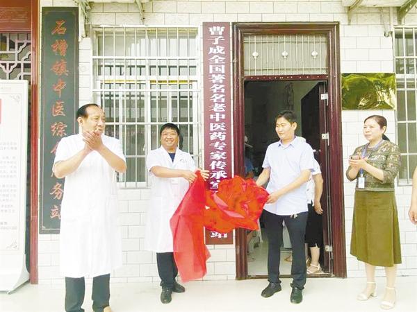 本报讯 (记者 徐松 通讯员 张洋 文/图) 为更好地推动医共体建设,推进医疗资源“双下沉”,提升基层中医药服务能力,方便广大患者就近就医,6月11日上午,曹子成全国基层名老中医药专家传承室石槽工作站正式揭牌。郸城县第二医疗健康服务集团县中医院院长水新华,全国基层名老中医药专家、县中医院名誉院长曹子成,石槽镇卫生院院长付登云出席揭牌仪式。
