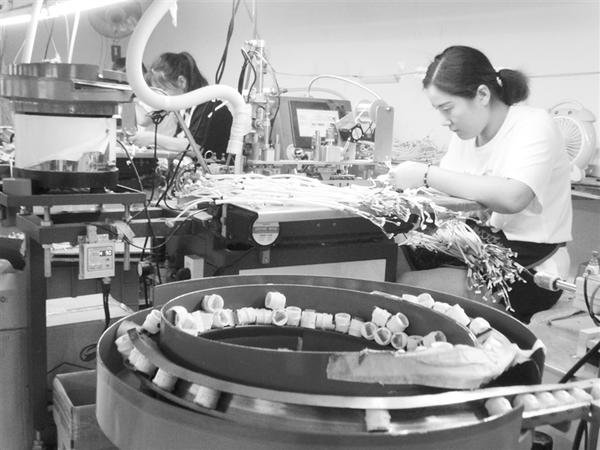 日前,沈丘县周营镇一家电子来料加工车间,经过岗前培训的女工在流水生产线上娴熟地加工各类订单电子元件。 近年来,沈丘县妇联积极发挥职能作用,紧紧围绕脱贫攻坚、乡村振兴目标任务,针对留守妇女肯吃苦、空闲多的特点,采取订单培训、特色培训等多种形式,开展各类就业培训活动,鼓励引导她们在家门口就业增收。截至目前,该县共有20000余名留守妇女做到挣钱顾家两不误。 谢辛凌 摄