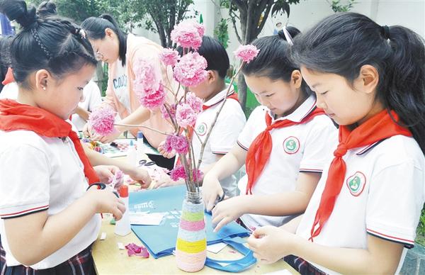 暑假到来,许多中小学生根据自己的爱好,参加了足球、美术、舞蹈等兴趣班。丰富多彩的假期生活,让孩子们更充实、更自信、更快乐。图为商水县新城学校的小学生正在学习手工制作。