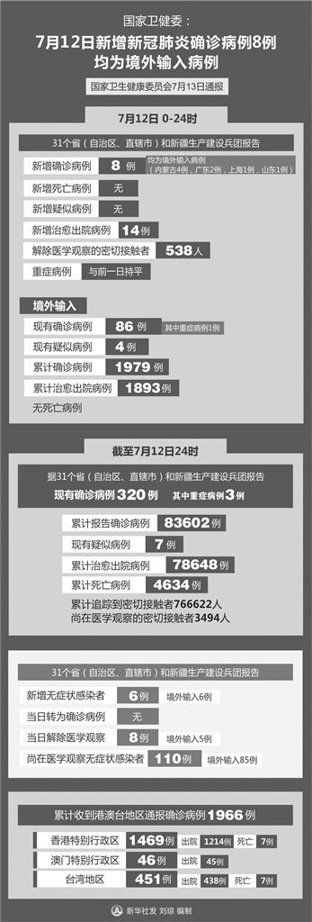 7月12日新增新冠肺炎确诊病例8例 均为境外输入病例