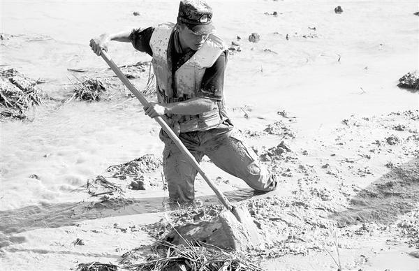 开挖导渗沟、填埋沙石、疏通排水渠、垒填沙袋,汗水划过脸颊,浸湿军装。在位于江西省余干县古埠镇的齐埠联圩上,武警江西总队上饶支队的60名战士头顶烈日,挥汗如雨,在泥水中处置一处堤坝坍塌险情。在这群平均年龄只有21岁的年轻战士中,最小的只有18岁,其中“00”后战士就有27人。在汗水与泥水的交织中,记者用镜头记录下这些最可爱的身影。新华社记者 万象 摄