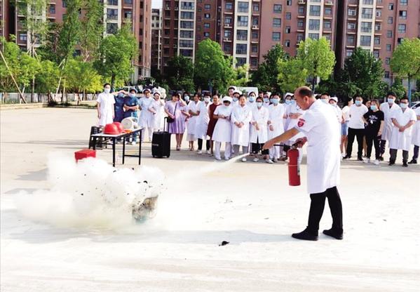 为有效处置突发火灾事故,增强员工消防安全意识,日前,周口人合医院开展了消防演练。通过演练,该院提高了医护人员的救火救灾、自防自救能力,普及了消防知识。陈伟 摄