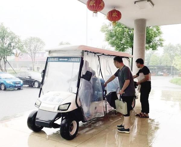7月22日,一场大雨让城市变成一片“汪洋”。为方便群众出行,当日,周口人合医院组织摆渡车为群众提供服务。据了解,人合医院购买了两辆11座电动车并配齐司机在医院内免费为出入医院的人员提供服务,这种服务形式在全市医疗机构中是首创。 记者 梁照曾 摄