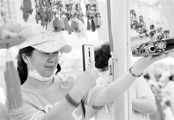7月30日,在陕西省妇女儿童活动中心,顾客在“巧娘和她们的市集”上挑选手工艺产品。