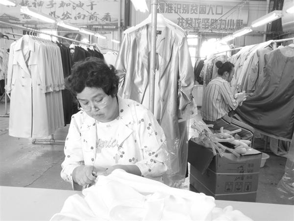 8月1日,在沈丘县付井镇王营村一处扶贫车间,留守妇女李凤侠手里的针线活儿一刻也没停。