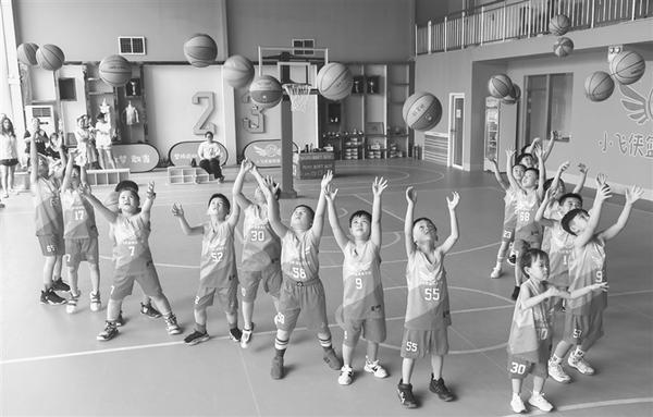 8月11日,孩子们在训练营中练习投篮动作。暑假期间,河北省安平县一家课外才艺培训机构举办暑期篮球训练营,吸引了众多热爱篮球的孩子们加入,在强身健体中充实暑期生活。新华社记者 李晓果 摄