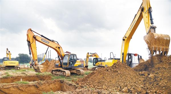 在淮阳区的北京达源环保设备产业示范园区建设项目施工现场,工人们正在紧张工作。记者 梁照曾 摄