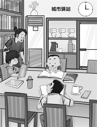 在江西省吉安市,街道上免费开放的城市驿站,为周边居民提供了一个休憩、阅读和交流的场所。城市驿站里不仅有图书,还为居民提供热水、微波炉、冰箱、免费WiFi、手机充电设备等。通过这些服务,城市驿站不断拓宽城市服务空间,成为城市里一道温馨的文化风景。这正是: