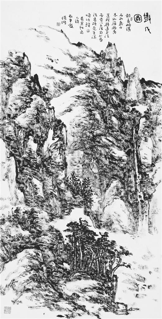 焦墨画是中国画自古以来的一个画种,与水墨画相比是不使用水的,唯有笔法而无墨法,但却要求具有润泽感、层次感效果的绘画。明末清初时的程邃是以焦墨作画的,潘天寿曾这样评价他:“惟垢道人、个山僧,能得其秘奥,三四百年来,迄无人能突过之。”曲高和寡,历代画者对焦墨画多望而却步。