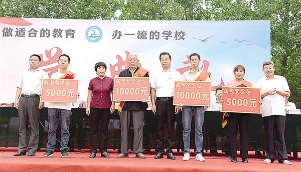 高考奖学金发放现场。