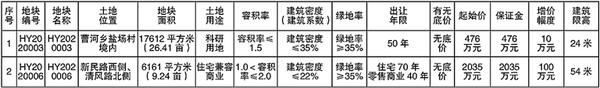 五、拍卖时间及网址拍卖报价时间为:HY2020003地块:2020年10月12日10时,HY2020006地块:2020年10月12日10时10分;拍卖网址:周口公共资源交易系统(网址:http://www.zkggzyjy.gov.cn)。