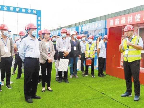 本报讯 (记者 张志新 文/图) 9月29日上午,周口市城乡一体化示范区建筑行业安全文明施工暨双重预防体系建设现场观摩会在中建一局周口宁和家园A区项目地顺利举行。来自市应急管理局、市城乡一体化示范区相关领导与67家建筑单位代表共计300余人参加活动。