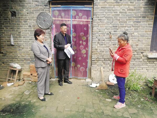 10月9日上午,商水县民政局干部朱赫到大武乡大王村贫困户王尽申家走访,了解“三秋”期间其家庭的生产生活情况,帮助解决存在的困难和问题。记者 付永奇 摄