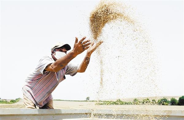 ③ 2020年5月28日,农民在摩洛哥的萨勒收获粮食。