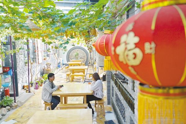 河北滦州:特色民宿助力美丽乡村建设 10月18日,游客在河北省滦州市教场村一家民宿旅馆内聊天。近年来,河北省滦州市教场村在美丽乡村建设中,依托毗邻滦州古城旅游景区的优势,围绕服务京津旅游市场,将农村闲置住宅改造成特色民宿,发展乡村旅游,形成乡村经济增长新亮点。新华社发