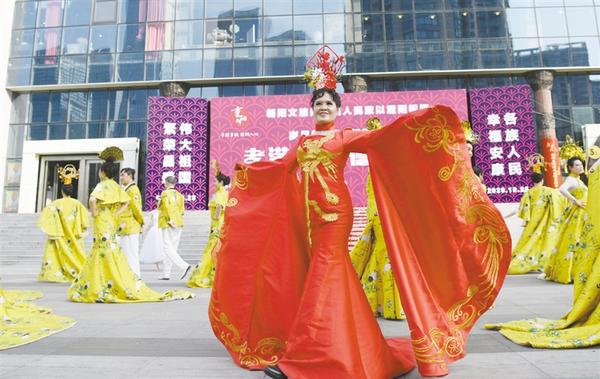 当日,“孝满京城 德润人心”重阳节主题活动在北京市朝阳区文化馆举行。此次活动分为快闪演出、曲艺专场、重阳市集三个板块,邀请老年人欢聚一堂,共度重阳节,同时也弘扬孝老敬老、老有所依的社会风尚。新华社记者 金良快 摄