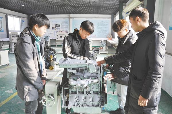 商水县在职业教育教学中,注重理论教学和实践教学有机统一,培养学生的动手能力和创新精神,学生就业后熟悉业务快、适应能力强、工作效率高,受到用人单位的好评。图为该县二职专师生在汽修实训车间开展实践教学。
