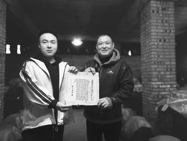 为发展商水旅游文化,助力扶贫攻坚,商水县委、县政府及商水县委宣传部,特邀请张一返乡策划打造邓城古镇酒文化博物馆。在各级领导和朋友们的帮助支持下,张一团队经过两年的不懈努力,现已征集到与酿酒文化相关的各类文物五百余件。经过深思熟虑,朱震昊决定将这份珍贵的“禁酒令”赠送给邓城古镇酒文化博物馆(筹)。
