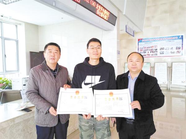 本报讯 (记者 宋风 文/图) “市场监管局的办事效率高、服务态度好,加班加点为我们办好了两个项目的营业执照!”12月6日,益海周口食品产业园项目部工作人员从市市场监管局、市市场监管局港区分局相关负责人手中接过营业执照时(如图)由衷地称赞。