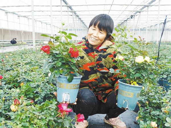 12月23日,在沈丘县周营镇一处花卉生产基地的智能温室大棚里,花农正观察欧洲月季花的生长情况。近年来,该镇积极调整优化农业产业结构,引进农业产业化龙头企业,大力发展林果、蔬菜、花卉、中药材等特色产业,通过优惠政策扶持,采取以“公司+基地+合作社+订单+农户”的经营模式,因地制宜发展特色种植,着力打造集农旅休闲观光、现代农业生产于一体的设施农业示范园区,促进现代农业增效、农民增收。谢辛凌 摄