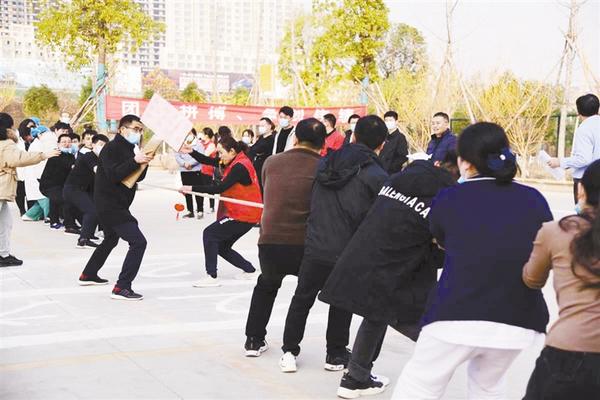 周口人合医院的冬季运动会开设了拔河、跳绳、4x100米接力赛、三人四足、乒乓球等五项比赛。首场开赛的是拔河,有14个科室参加,这是一个团队力量的较量,参加人数众多,“白衣天使”们组队加入战团,加油声喊成一片。最终这场大力士的比拼,被行政部门队夺走第一名,第二名被手术室队的勇士们取得,第三名花落外一科队。