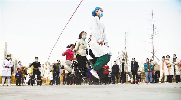 本报讯(记者 梁照曾 文/图) 12月10日下午,在周口人合医院停车场,“白衣天使”们正在跳绳、拔河、打球……据了解,这是周口人合医院将医生护士们从岗位上“拉”到室外,举行冬季运动会,让医生护士们在服务好患者的同时,也要注意锻炼身体。