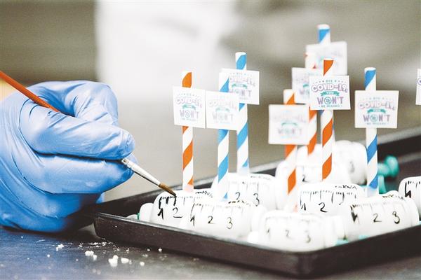 1月13日,在德国多特蒙德市的“许尔内尔烘焙乐园”糕点店,店主蒂姆·科图姆制作注射器造型的蛋糕。德国启动新冠疫苗接种后,德国西部城市多特蒙德一家糕点店推出一款注射器造型的蛋糕,以庆祝新冠疫苗的到来,表达告别新冠病毒的愿景。新华社发