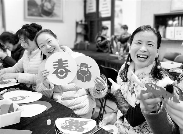 1月22日下午,周口华威民俗文化博物苑内,芸雅读书社的会员在学习剪纸,感受传统文化带来的快乐。 记者 王映 孙安平 摄