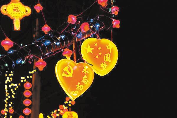 连日来,扶沟县城桐丘路色彩缤斓,形式各异的灯饰流光溢彩、美不胜收。街道两旁得景观树摇身一变,成了五彩缤纷的“星星树”,一串串红灯笼高高挂起,一颗颗“中国心”错落有致,引得路过的市民纷纷驻足拍照留念。