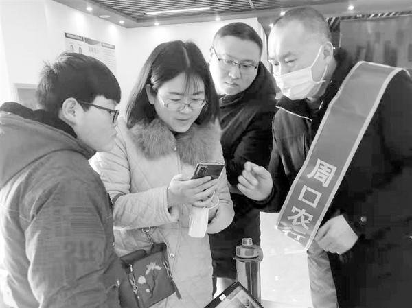 图二:为扩大金融服务半径,便利群众生活,近日,农行周口分行深入开展赴社区“寒冬送暖”活动,为群众上门办理银行卡、手机银行等,群众足不出户即可享受优质金融服务。图为农行西城支行员工利用周末时间在社区为居民办理开卡、掌银业务。