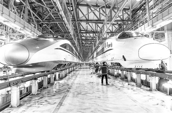 1月26日晚, 贵阳北动车运用所的保洁人员在清洗动车组列车。春运临近,贵阳车辆段贵阳北动车运用所加大对动车组列车的检修、保养、清洁力度,以安全的状态和崭新的面貌迎接即将到来的春运。