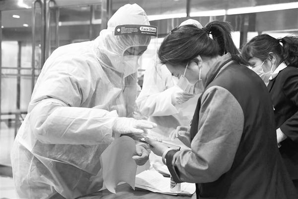1月31日,在北京市海淀区北太平庄街道临时新冠疫苗接种点,工作人员核查接种人员的第一剂新冠疫苗接种信息。