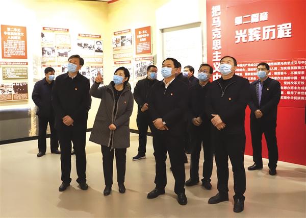 本报讯 (记者 徐松 文/图) 2月18日,新年上班第一天,市人大常委会副主任、县委书记罗文阁,县委副书记、县长李全林带领县四个班子领导和部分县直单位党员干部,开展中共党史学习教育活动(如图),激励全县各级党员干部不忘初心、牢记使命,在新时代不断加强党的建设,更加紧密地团结在以习近平同志为核心的党中央周围,始终保持永不懈怠的精神状态和一往无前的奋斗姿态,振奋精神,坚定信心,锐意进取,真抓实干,奋力谱写全面建设社会主义现代化郸城新篇章,以优异成绩迎接建党100周年。